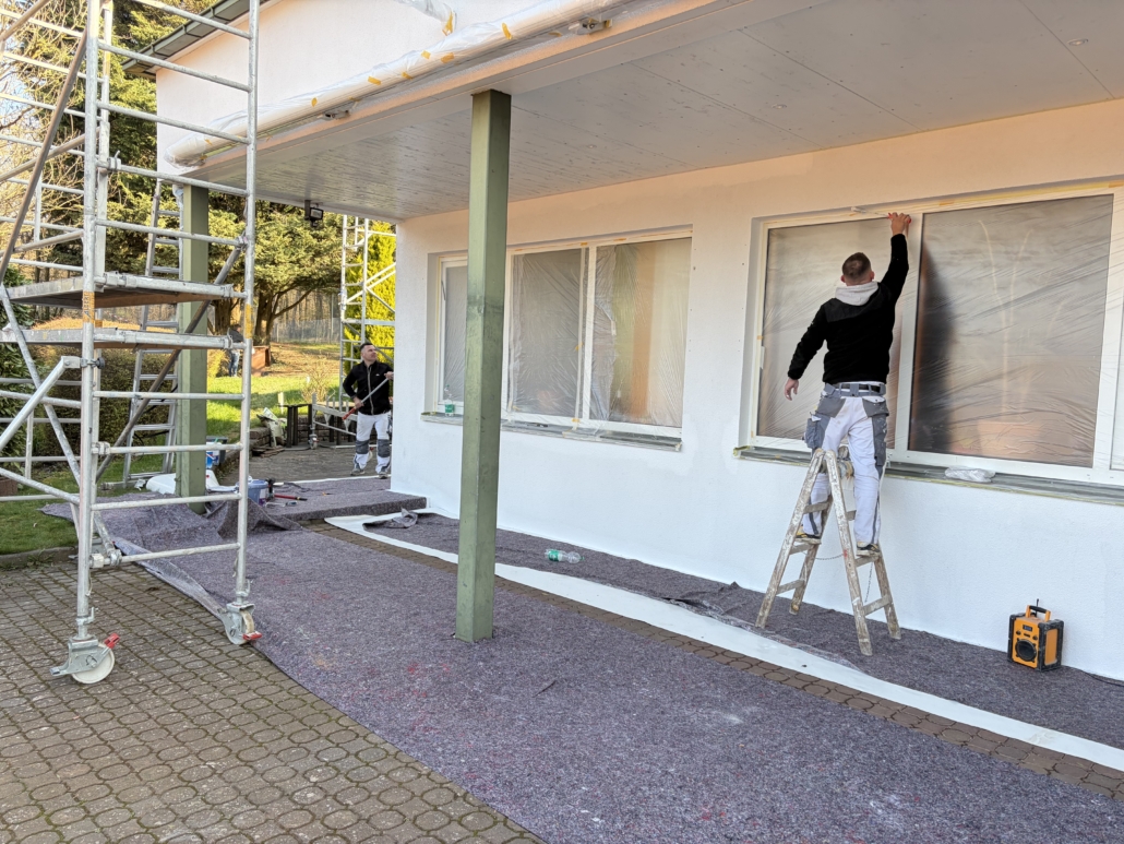 Das Clubhaus erstrahlt in frischem Glanz. Der Vorraum der Umkleiden ist schon frisch gestrichen. Jetzt ist die Fassade dran. Die Regenrinnen zu säubern, war einiges an Arbeit. Unsere Fachkräfte leisten ganze Arbeit, das wird schön.